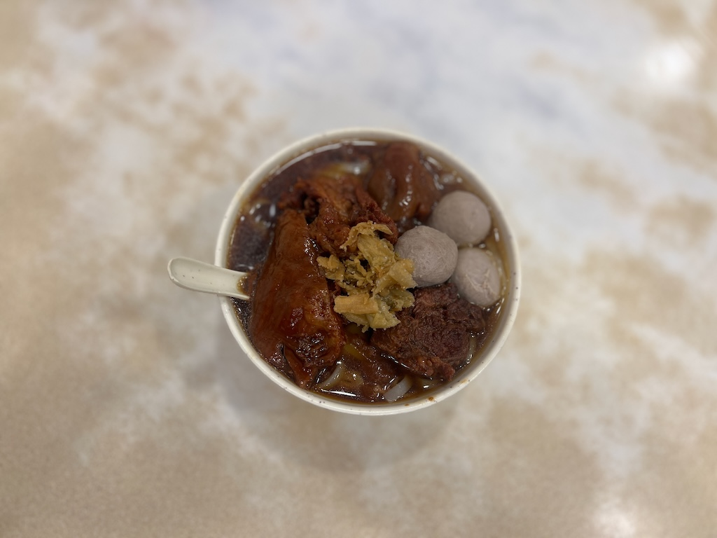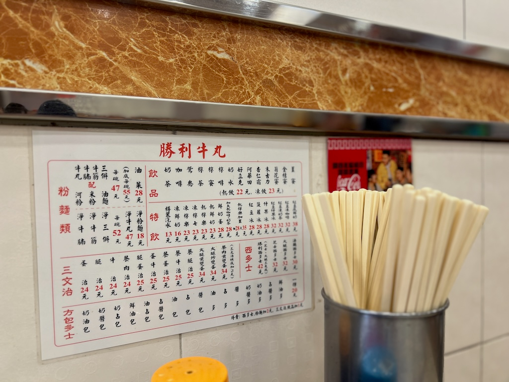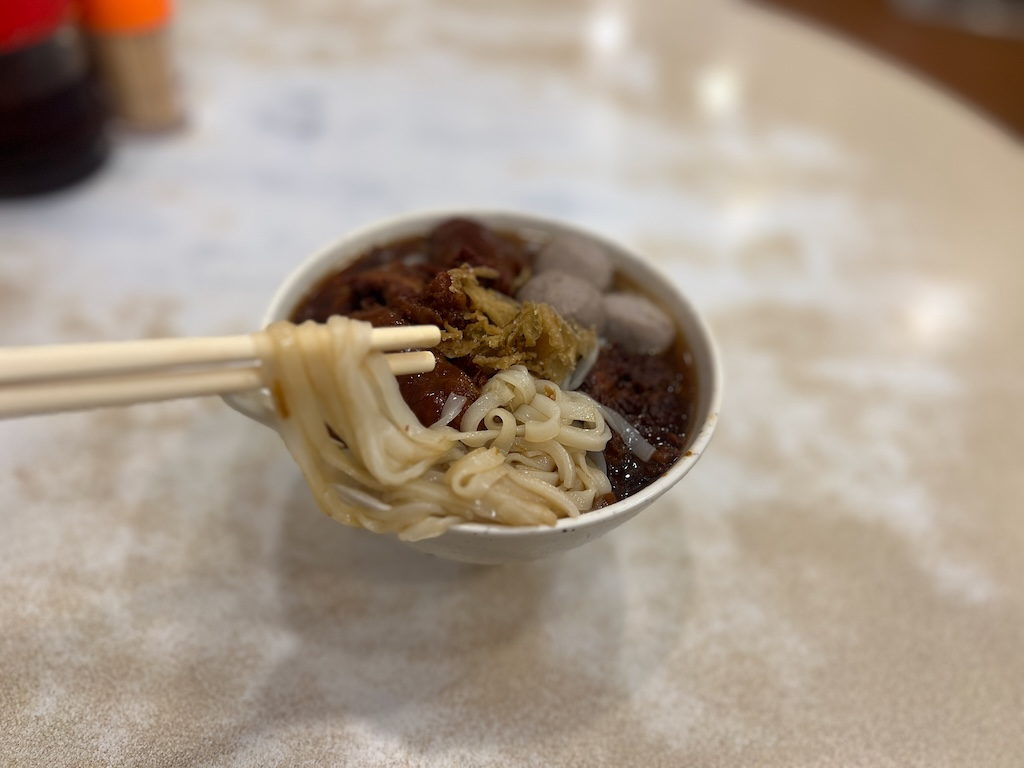 在勝利牛丸店坐下時,侍應女士看到我一臉茫然,就推薦了「牛肉三拼」。這碗麵裡有牛腩、牛筋和牛丸。價格是47元,我覺得相當合理。