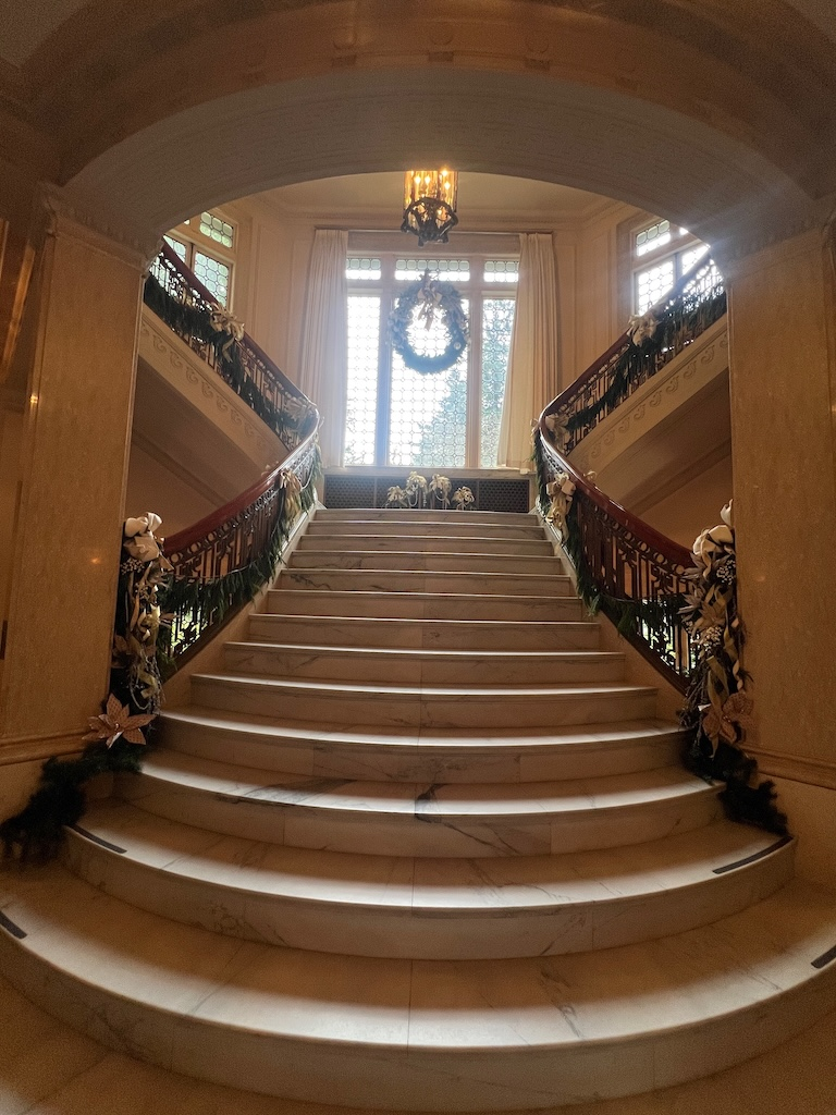 由於我在十二月造訪皮托克大宅,我得以欣賞那裡的節慶氛圍,這一切都是工作人員精心布置的。聖誕主題非常美麗,這時候的皮托克大宅洋溢著皇家氣息。整個地方充滿香檳金色,奢華而溫暖,並搭配大量紅色裝飾點綴,增添節日氣息。