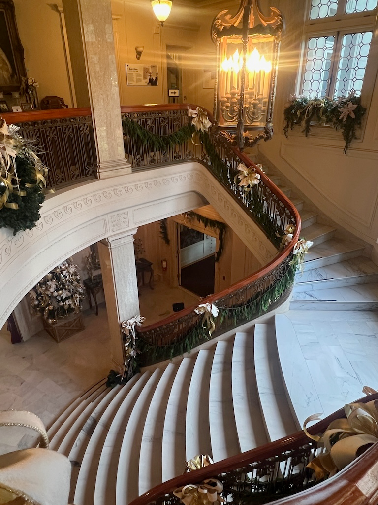 大宅的其中一個重要特色是一座宏偉的圓形大理石樓梯,帶領人們穿越城堡的各個房間。