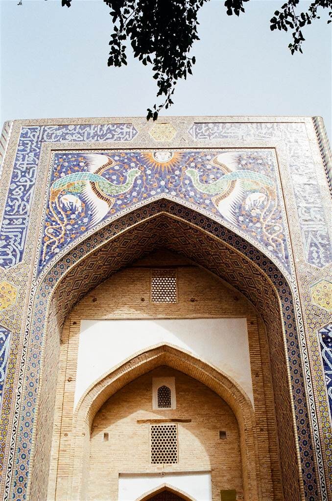 納迪爾‧迪萬貝吉伊斯蘭學院最引人注目的特徵,或許是其宏偉而美麗的正門上那對鳥的裝飾。伊斯蘭建築與藝術通常避免動物的具象描繪。這種背離伊斯蘭傳統的例子非常少,但就像撒馬爾罕的舍爾多爾獅子學院(Sher Dor)以一對獅子為特色一樣,在布哈拉的納迪爾‧迪萬貝吉伊斯蘭學院中,一對西木爾鳥也在正門(pishtaq)上為裝飾。事實上,納迪爾‧迪萬貝吉伊斯蘭學校的這一特徵,是基於舍爾多爾獅子學院中類似的藝術表現而建造的。