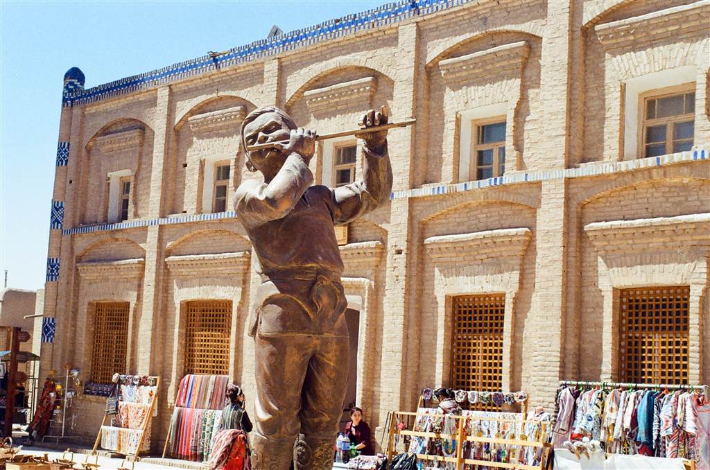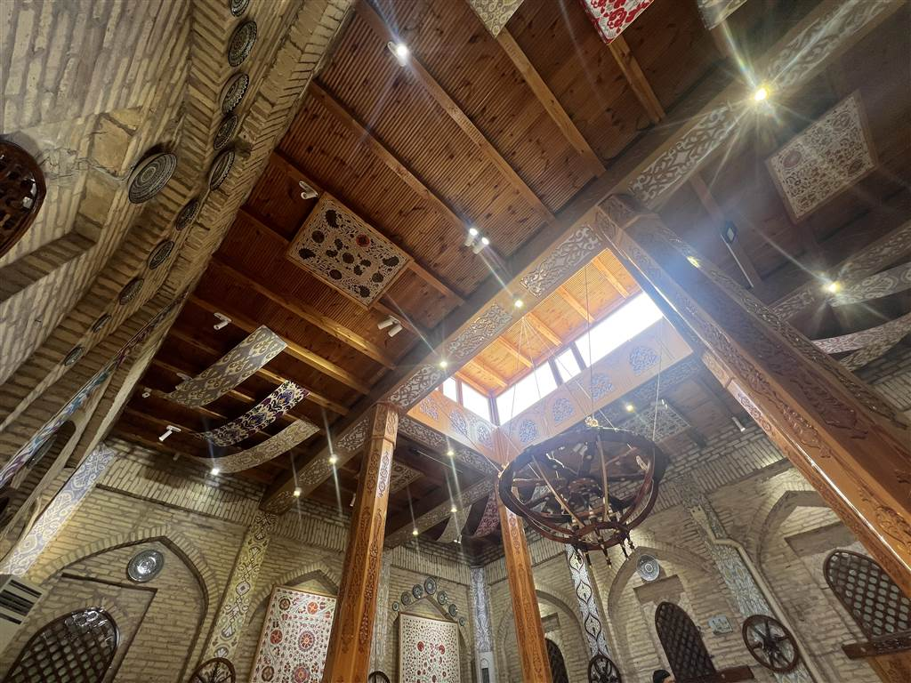 這座建築群相對較近期完成,建於1908年,位於扎拉夫申餐廳旁邊,當天廣場上充滿了熱鬧的氣氛。有小販販賣各式奇珍異寶,廣場上還有青銅雕塑。我很享受我們的午餐,但美好的天氣在呼喚我們,因此我們再次走到戶外,投入希瓦歷史魅力的懷抱。我們漫步穿過希瓦舊城的更多街區,遇到了一家小銅匠鋪。