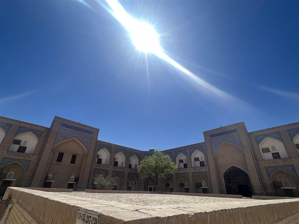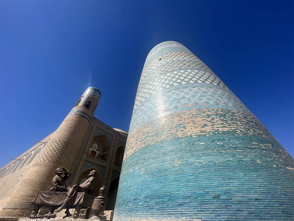 希瓦乾淨整齊,風很大。我們經過了卡爾塔·米諾爾 (Kalta Minor) ,去尋找東方之星希瓦酒店 (Orient Star Khiva Hotel) ,它立於穆罕默德·阿明汗伊斯蘭學院 (Madrassa Muhammad Aminkhan) 的原址,取而代之為營業場所。由於穆罕默德·阿明汗 (Madrassa Muhammad Aminkhan) 去世,卡爾塔·米諾爾的建設從未完成。