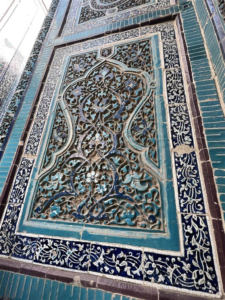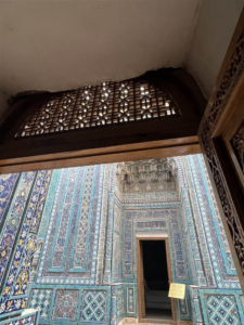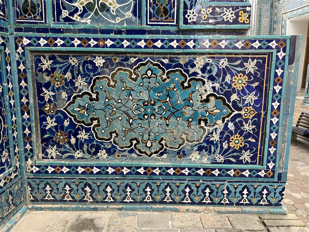 在陵墓的門口,有那種統一的土耳其藍、海藍和天藍色主題,再加上沙伊辛達建築群中其他建築使用的典型土色磚塊,但相似之處僅止於此。每座陵墓的裝飾都有明顯的不同,因為它們都是在不同時間建造,由不同的建築師裝飾完成的。