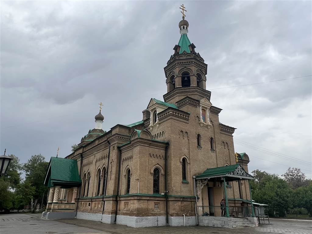 我坐在庭院裡,心情陰鬱,想著在這場雨下我們是否能出門。昨天是肯定沒預料到這場雨。原本,我們有幾個計畫。首先,我們想去看看市內一些不太知名的景點。我的建議是參觀所謂的“歐洲城”。那裡有一座俄羅斯東正教教堂。由於我沒能看到塔什干最大的教堂,能在烏茲別克感受到基督教的氛圍,也是一個不錯、不一樣的經歷。
