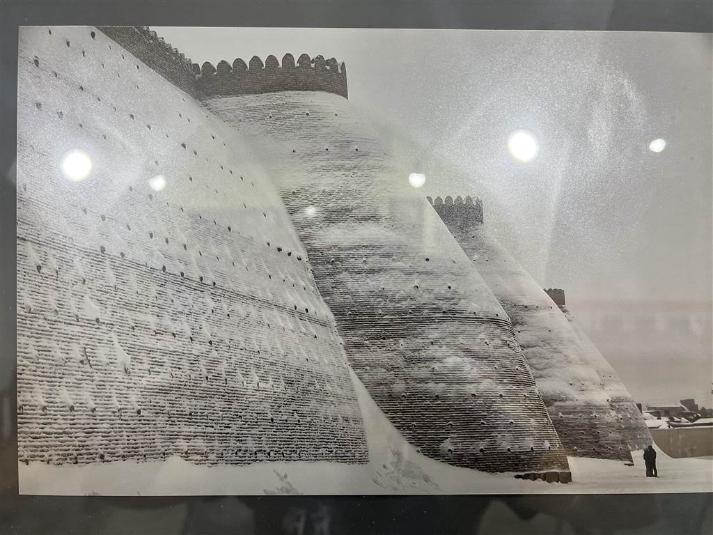 這沙塵暴立時改變了布哈拉的面貌,令我們感到很驚訝。我們沿著布哈拉同樣的街道走著,突然才意識到,前一天的陽光原來是一大祝福。沙漠的溫暖、魅力和此起彼落的金色光影— 突然之間變得模糊、混沌。強風襲來,捲起似乎從無處而來的塵土。街道空無一人,一層灰棕色的幕籠罩著整個氛圍,比陰暗s更深沉。那一天,烏茲別克似乎在夢囈著災難的語言,以一捲捲塵土的嗡嗡聲吹來像地獄般的呼聲。我們繼續前行,因為當天的觀光行程不容耽擱。很快,我們穿越沙塵暴,來到了沙夫卡特·博爾塔耶夫 (Shavkat Boltayev) 的攝影畫廊。