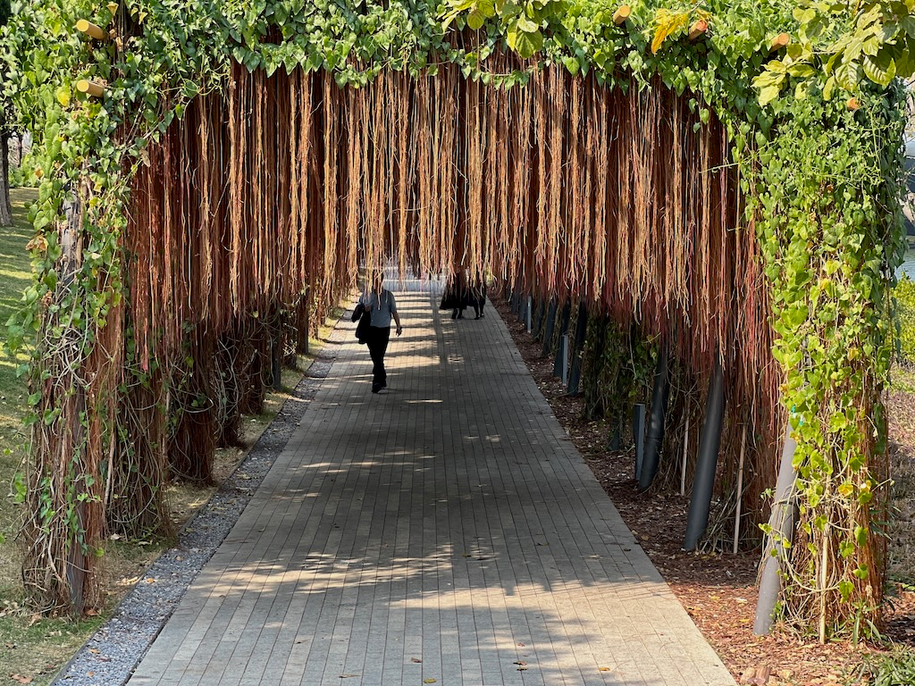 還有一個適合拍照打卡的珠簾涼亭,懸掛著某種植物的氣根,有特色。