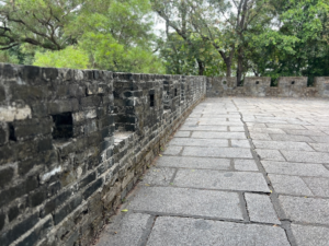 炮臺所在的平台高3米,長26.2米,寬15.5米。防禦結構的上部由青磚建造,地基和下部則由花崗岩構成。