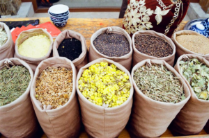 在路上,我們經過了一個市集,但它明顯是接待旅客的,價格也很高檔。那裡瑰麗的香料店裡擺滿了一個又一個的帆布袋,裝著的滿滿的香草。這些香草散發出混合的中東風味的香氣。這種感官體驗極其誘惑人,挑逗著人對各種美好事物的想像。首先浮現腦海的是那盤令人垂涎的串燒肉,經大量孜然粉調味而散發出濃烈的香氣。
