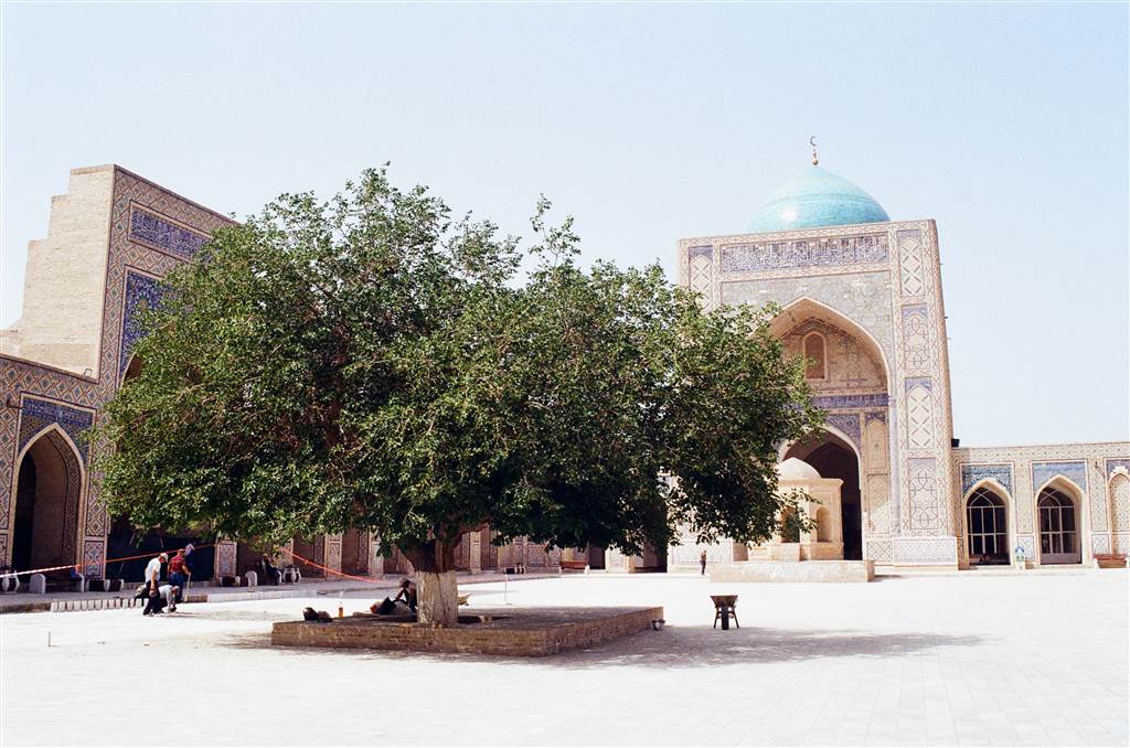庭院內共有208根柱子和288個圓頂。那裡的景象格外莊嚴。此時片刻,陽光已經滿滿地包圍著我們。我們在布哈拉最神聖之地享受那優雅的景致。在遠端,那座名為Kok Gumbaz的藍色圓頂矗立在一個不尋常的八角形建築上,「其設計目的是改善建築的聲學效果,放大伊瑪目講述週五講道時的聲音。